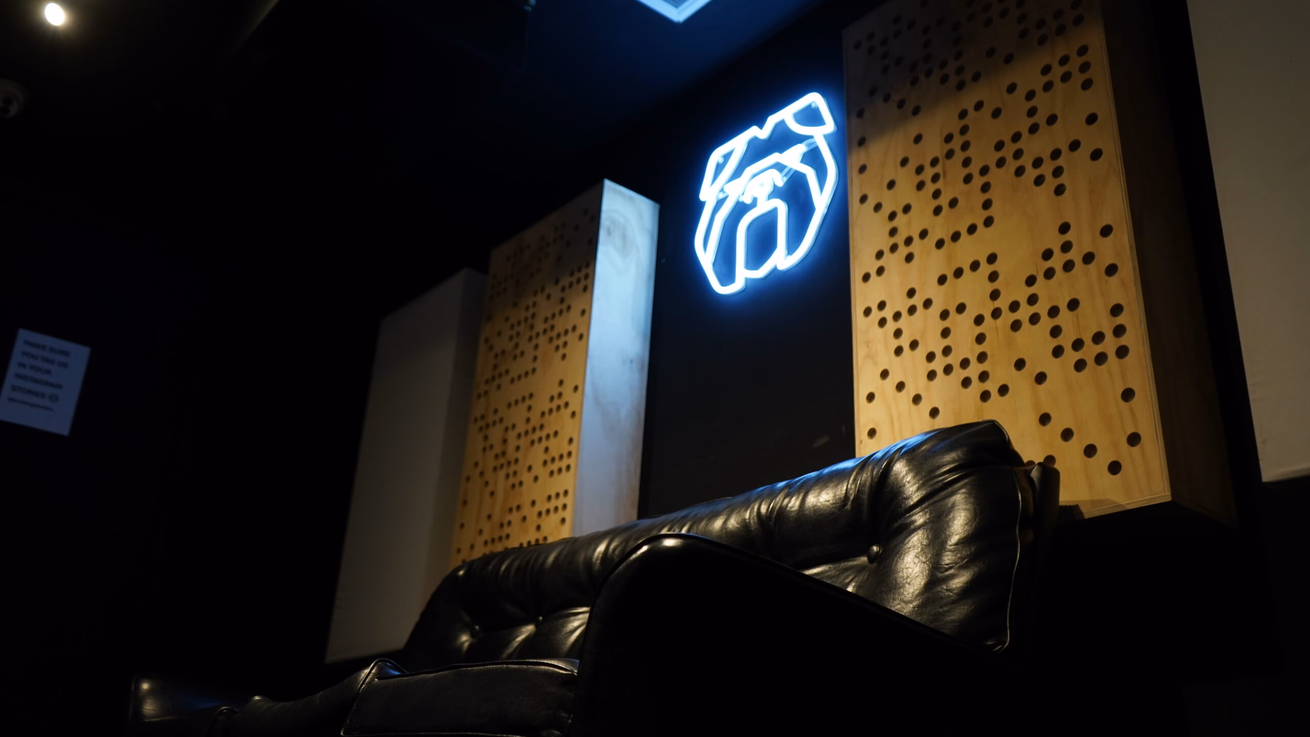 Our production room has a fully equipped vocal booth with a mic and headphones.